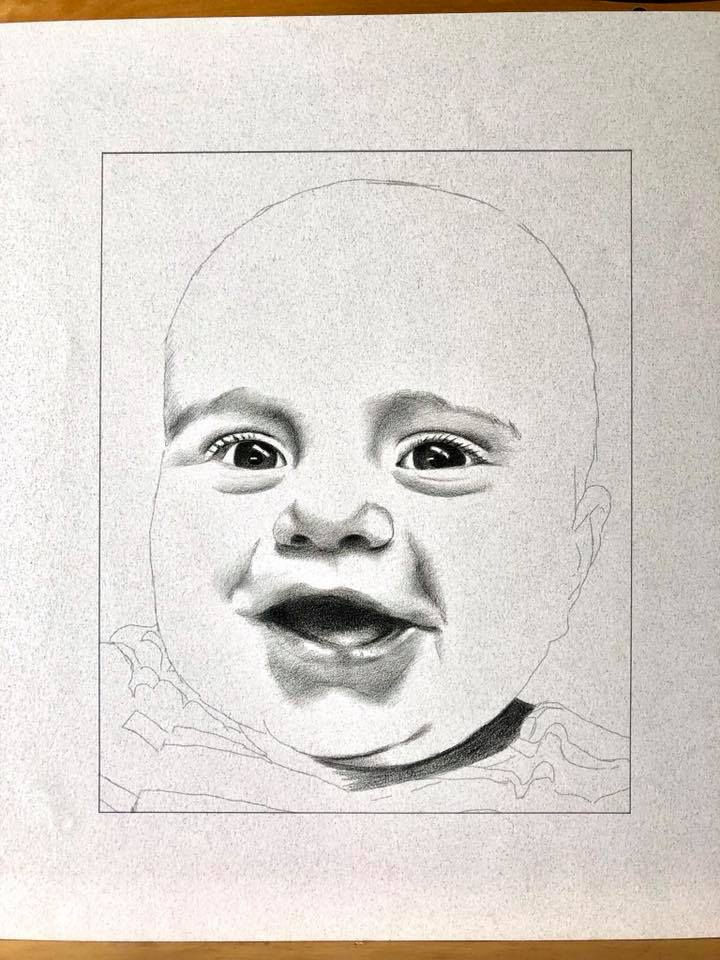 A member of the community and fan of my work asked if she could keep me on retainer so I could draw all of her grandchildren as each of them blessed the world with their presence. This first piece was a simple, yet precious way to give her something unique and personal.